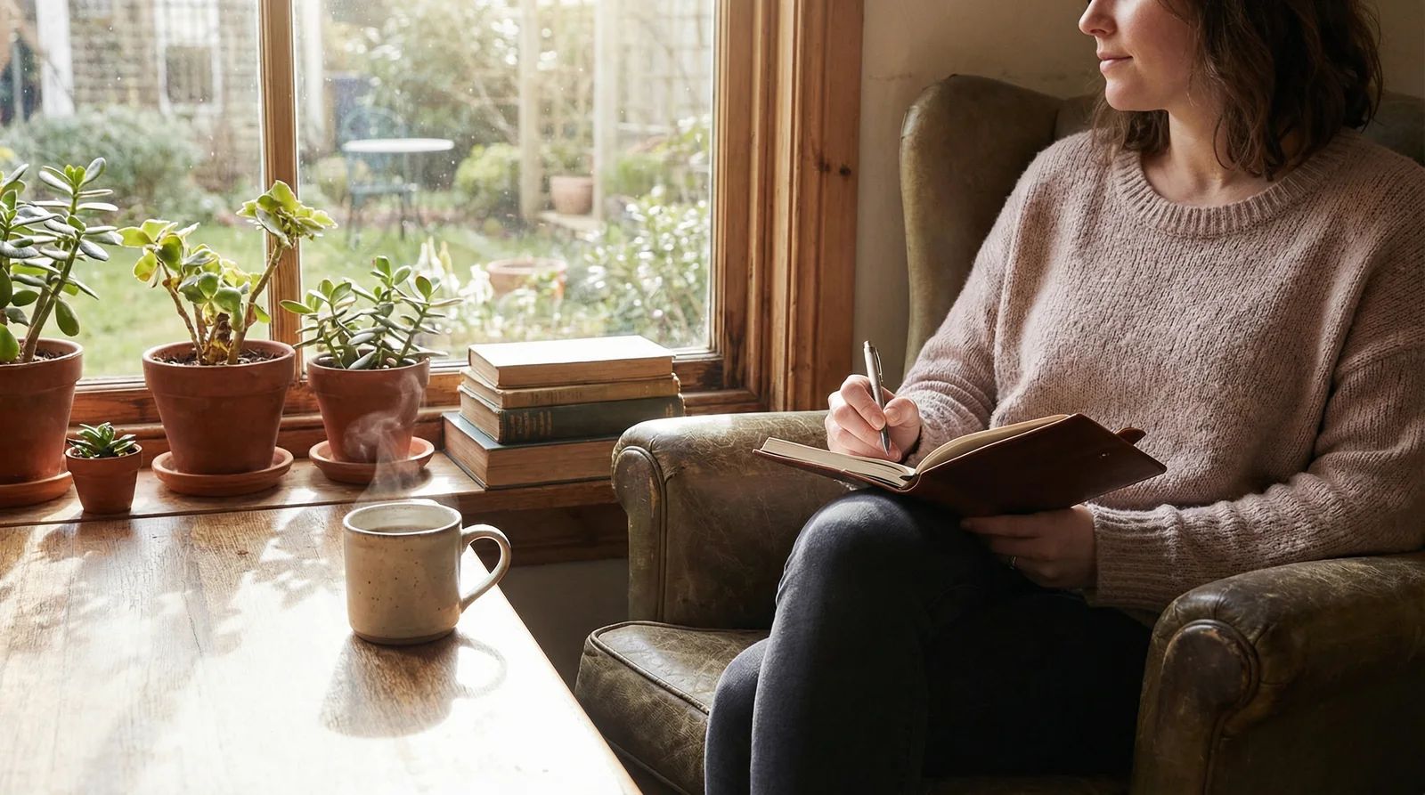 You write in your own notebook. Your words stay completely private. We never see what you write.