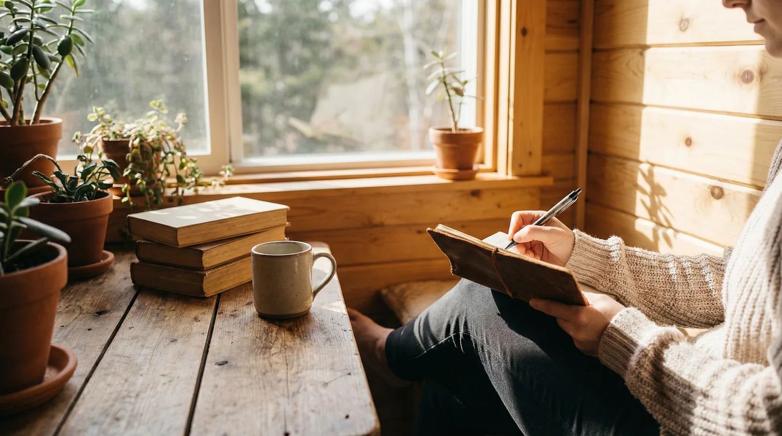 You write in your own notebook. Your words stay completely private. We never see what you write.