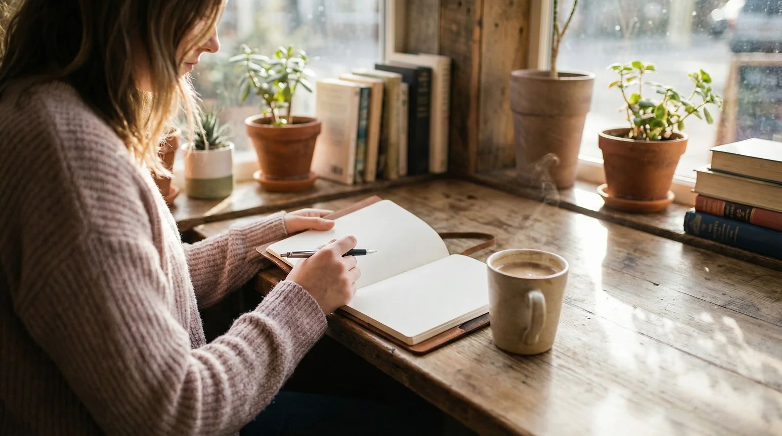 You write in your own notebook. Your words stay completely private. We never see what you write.