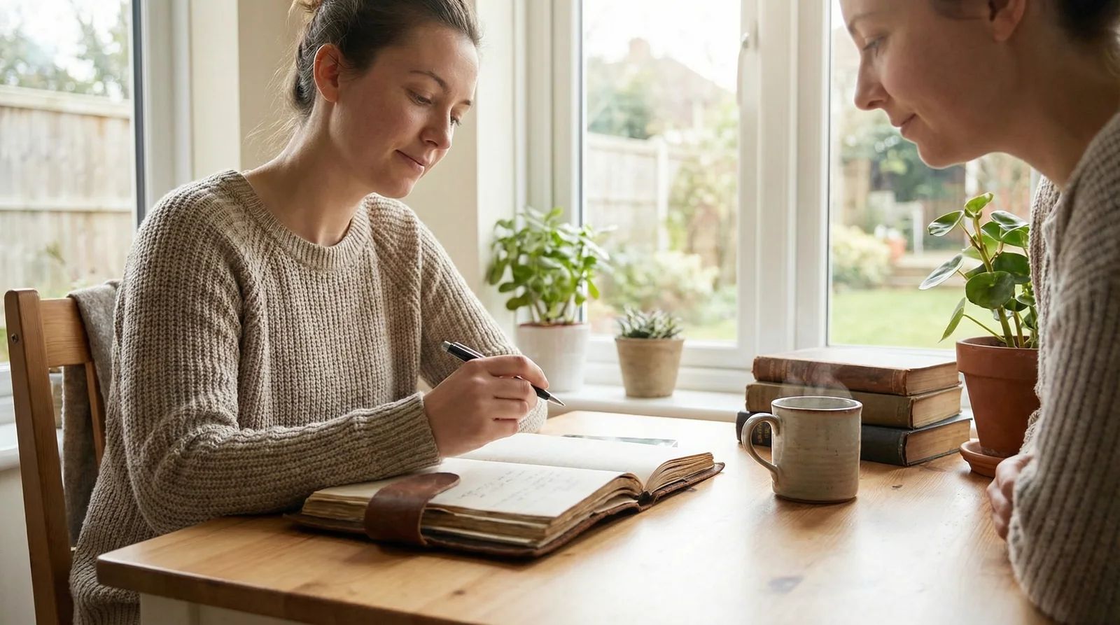 You write in your own notebook. Your words stay completely private. We never see what you write.