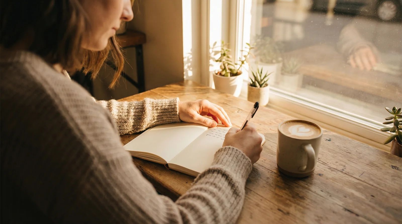 You write in your own notebook. Your words stay completely private. We never see what you write.